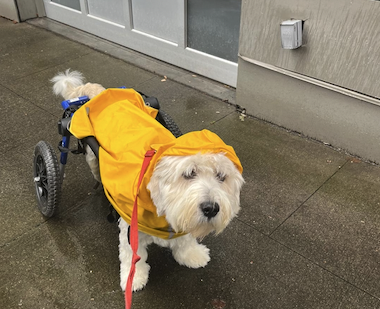 A big part of my life revolves around my dog, Falkor—a 65 lb Pyrenees, Havanese, Corgi mix rescue who somehow ended up with the personality of all three. He became paralyzed, which wasn’t something I ever expected to navigate, but it’s turned into one of the most meaningful parts of my life.
